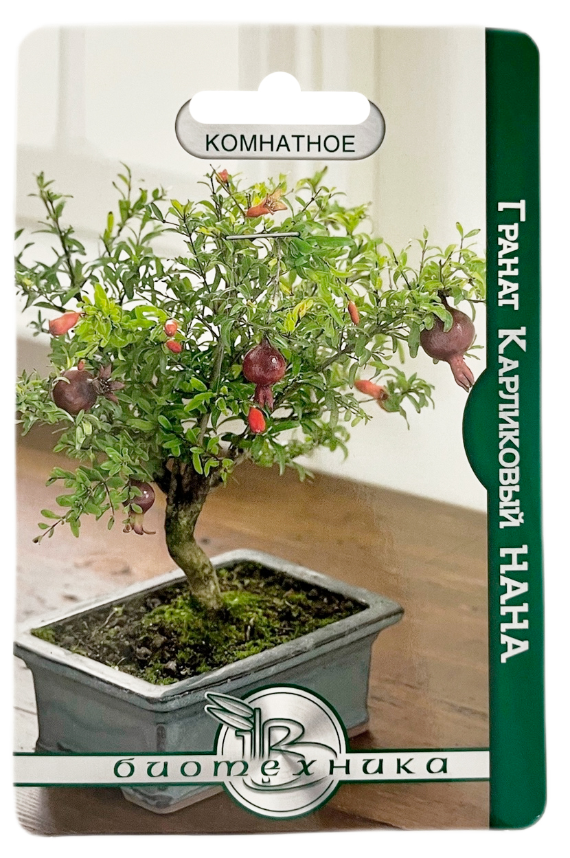 Гранат карликовый НАНА БиоТехникаВ отличии от садовой формы, карликовый гранат не полностью сбрасывает листья на зиму, поэтому в качестве комнатного растения более декоративен. Гранат цветёт не только красиво и необычно, но и долго – с апреля до конца лета. Представляет собой, как бы «уменьшенную копию» садового граната, с мелкими листьями, цветками и плодами.