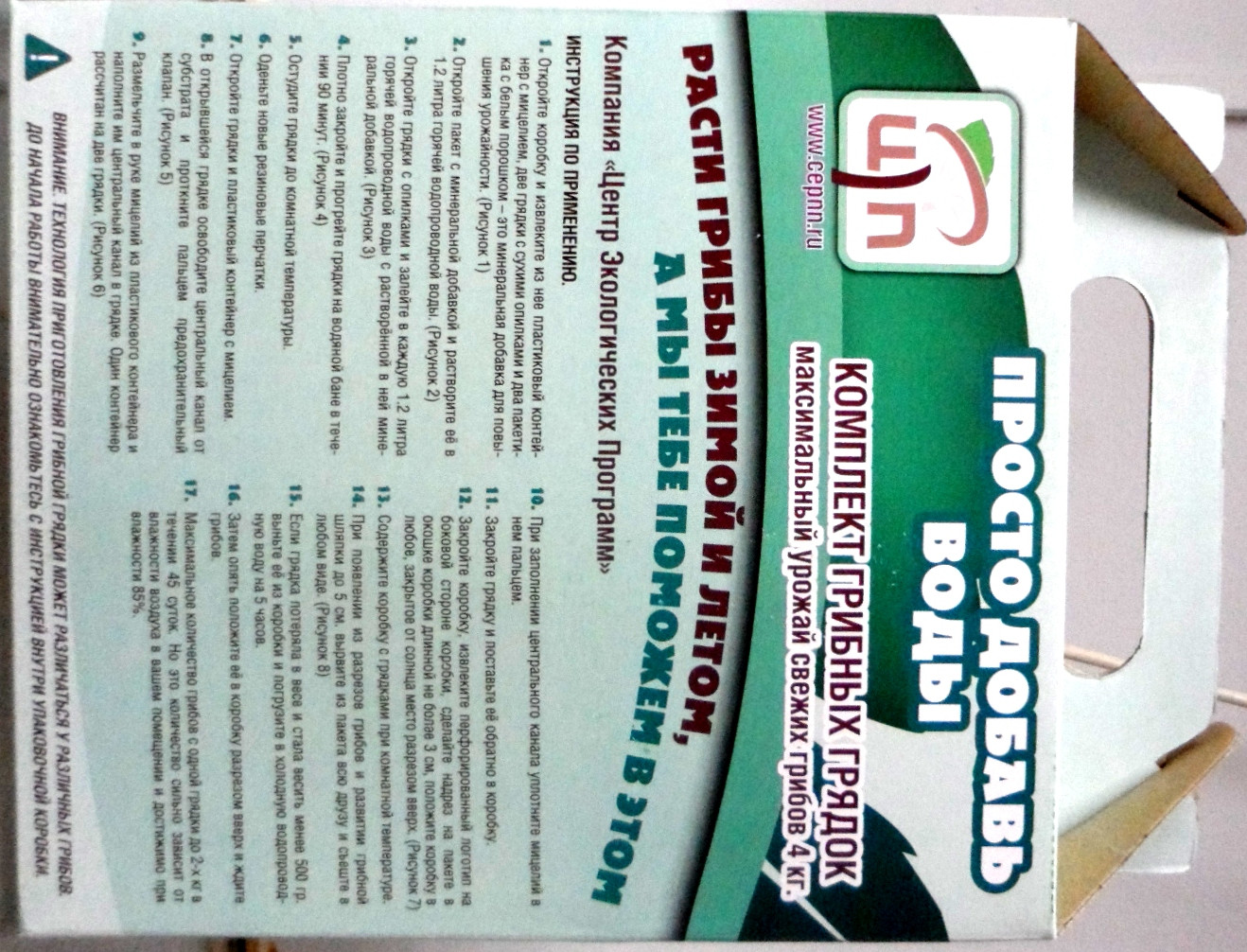 Уникальная технология компании "Центр Экологических Программ" для выращивания грибов с центральным каналом. Урожайность до 4-х килограмм грибов.
