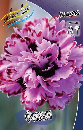 Гвоздика Физзи. Многолетнее, травянистое, высотой 15 см. Куст раскидистый, стебли восходящие с острыми блестящими, с вечнозелеными, серо-голубыми листьями и лежачими ответвлениями, легко укореняющимися. Соцветие крупное, махровое, светло-розовое с красной сердцевиной и светлым гофрированным краем. Цветки имеют лёгкий, приятный аромат. Цветет с июня по август. Гвоздика Физзи неприхотлива, предпочитает солнечные места и хорошо дренированную почву. Посадку производят в марте или в начале апреля, высаживают через 20—30 см друг от друга. Используется для озеленения, в альпинариях, бордюрах. Растение холодоустойчивое, неприхотливое. Многолетнюю гвоздику размножают черенкованием или делением куста.Характеристики