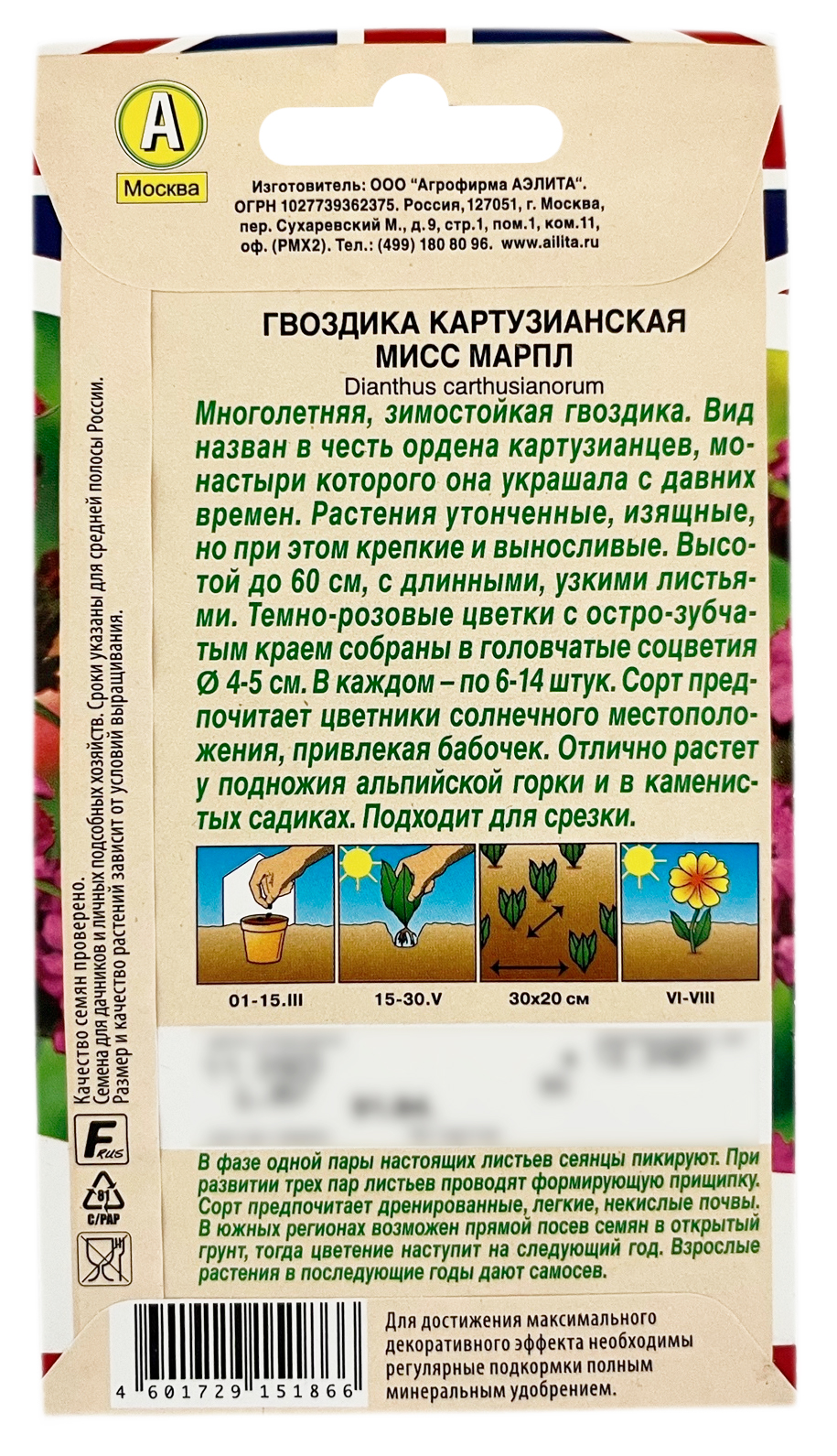 Гвоздика Мисс Марпл картузианская 0,05г семена