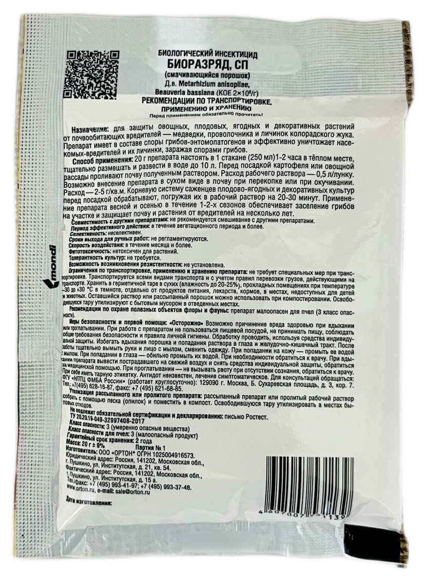 Биоразряд 20гр. Ортон