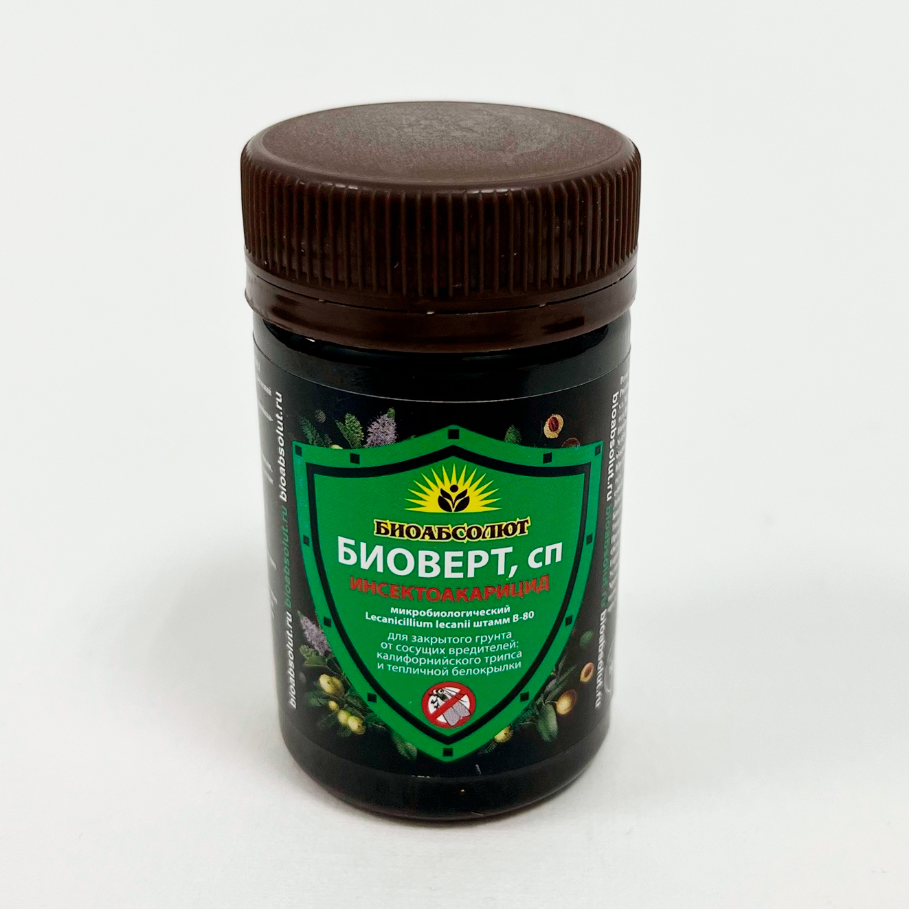 БИОВЕРТ инсектоакарицид 10 грДля защиты овощных, цветочно–декоративных растений закрытого грунта (тепличные, комнатные растения) от сосущих вредителей: западный цветочный (калифорнийский) трипс, тепличная (оранжерейная) белокрылка, обыкновенный паутинный клещ, табачный трипс.
