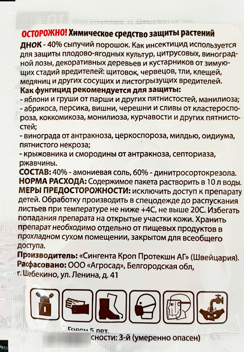 Днок 10г от болезней и вредителейПрепарат Днок – очень эффективное и небезопасное средство, избавляющее культуры от распространенных вредителей и заболеваний.