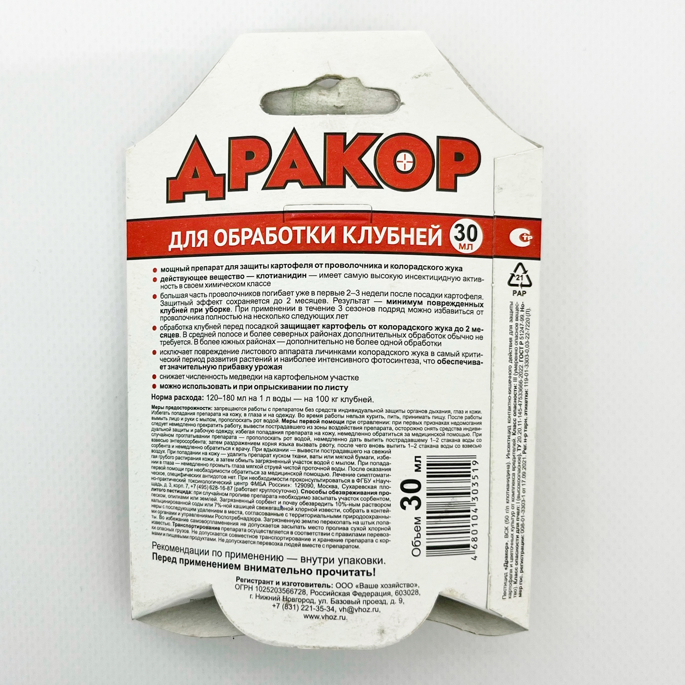 Дракор для обработки клубней 30млИнсектицид для защиты картофеля и цветочных культур от комплекса вредителей в личных подсобных хозяйствах.