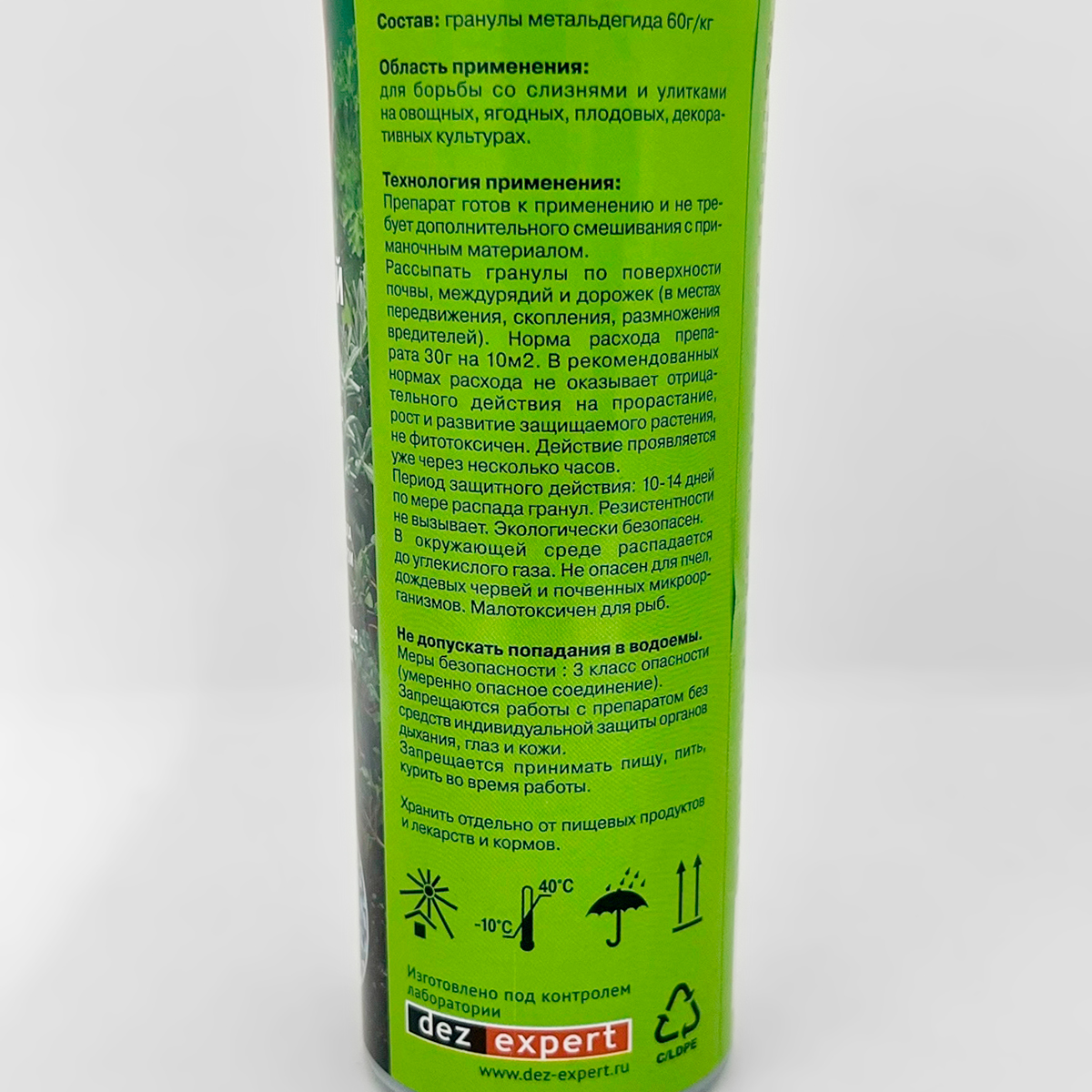 Состав:гранулы метальдегида 60 г/кг.