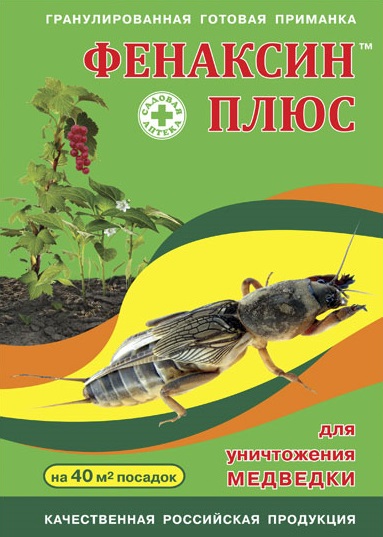 Готовая приманка в гранулах для защиты сельскохозяйственных культур от медведки. Препарат вызывает гибель медведки в течение 3 часов после поедания приманки и защищает растения от медведки до 14-20 суток. Фенаксин Плюс не угнетает растения, не накапливается в почве, а постепенно разлагается в ней.