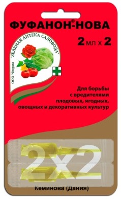 Средство "Фуфанон-нова" обеспечивает эффективную защиту от всех насекомых вредителей, включая тлю, клещей, моль и трипсы. Препарат можно применять для обработки овощных, цветочных, ягодных и овощных культур. "Фунанон-нова" действует очень быстро, обладает низкой токсичностью и легко разрушается в окружающей среде, не загрязняя почву. Препарат не опасен для растений, возможно проведение нескольких обработок в течение одного сезона.Характеристики