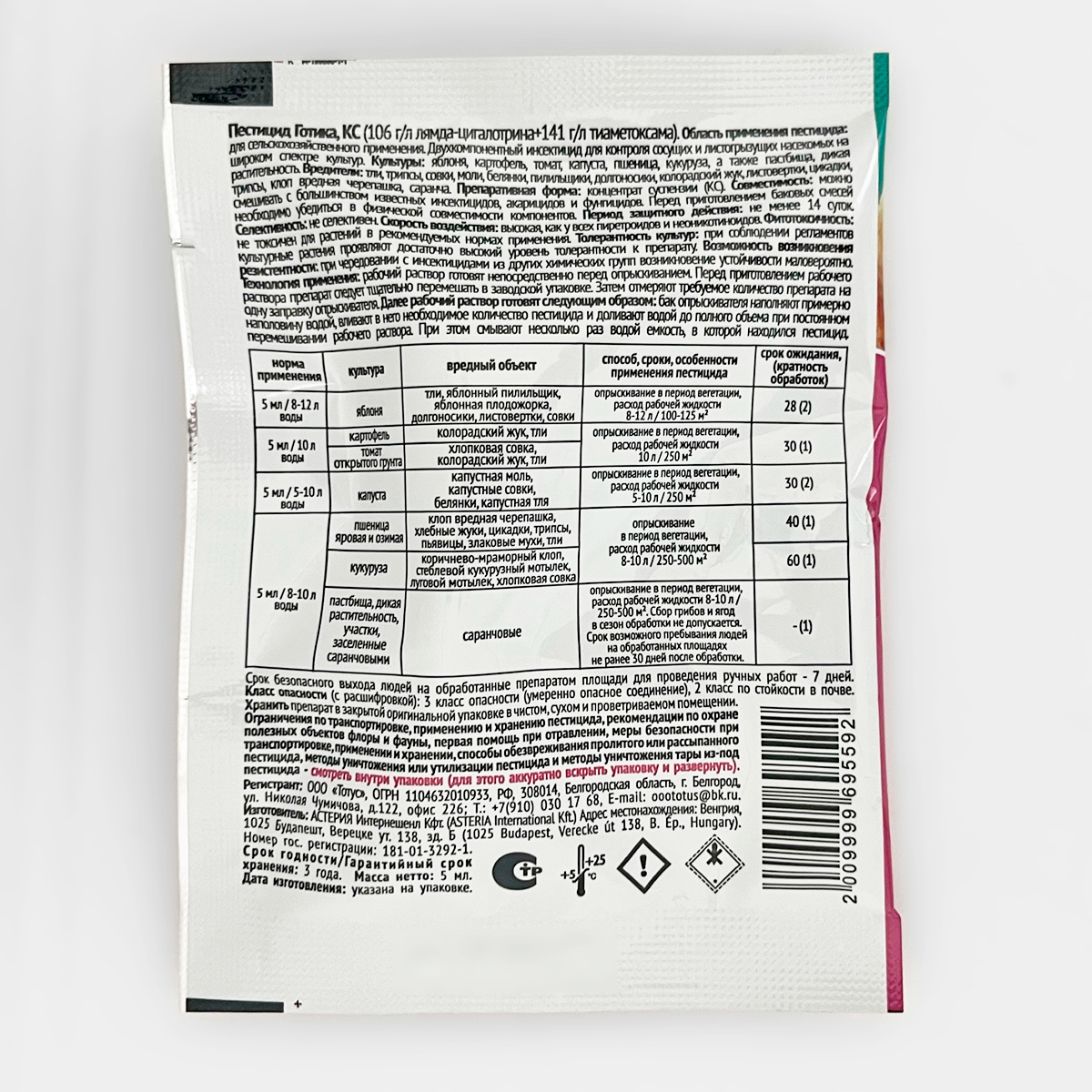 ГОТИКА от вредителей 5млДвухкомпонентный инсектицид для контроля сосущих и листогрызущих насекомых на широком спектре культур.