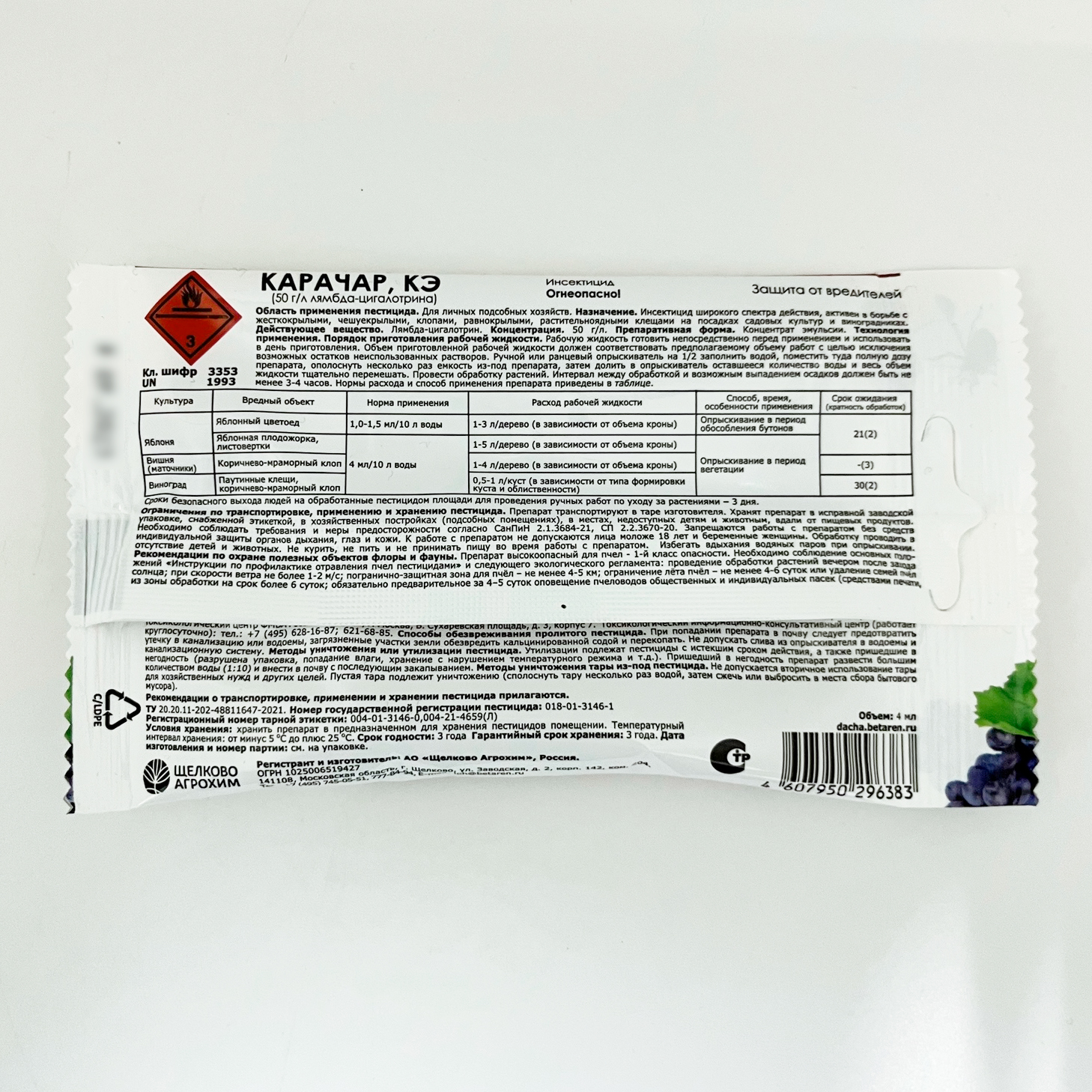 Карачар, КЭ 4млСостав: 50 г/л лямбда-цигалотрина.