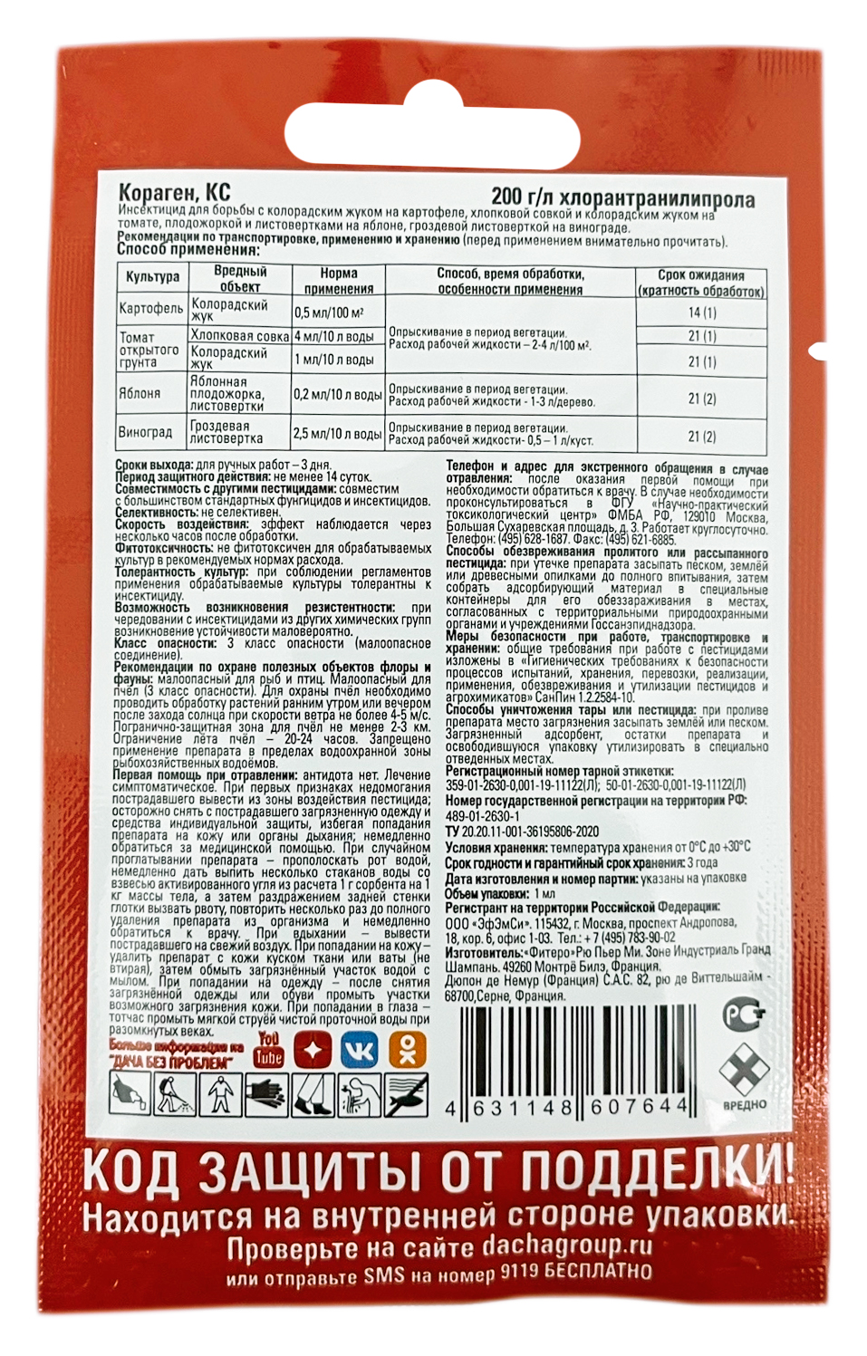 EXPERT garden КОРАГЕН, КС 1млПротив: колорадского жука, личинок, яйцекладок на картофеле и томате.
