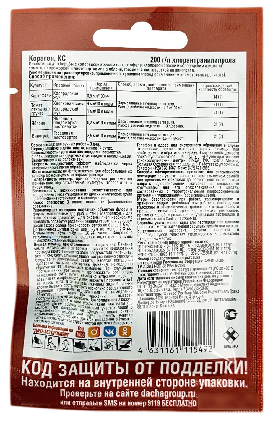 EXPERT garden КОРАГЕН, КС 2млПротив: колорадского жука (личинок, яйцекладок), яблонной плодожорки, гроздевой листовертки, хлопковой совки на томате, яблоне, винограде, картофеле.