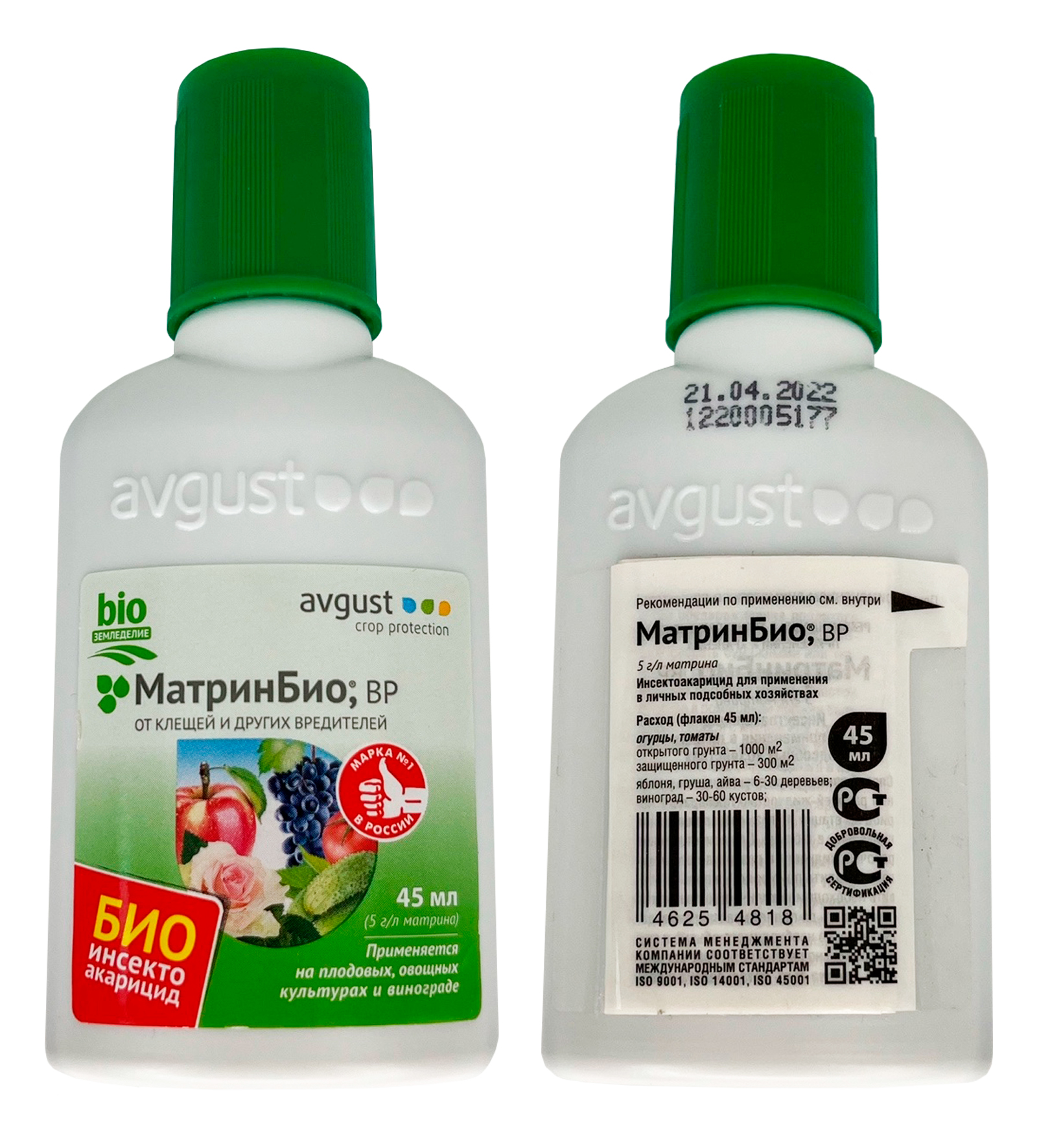 Инсектоакарицид Avgust МатринБио 45млНовый биологический препарат для защиты овощных, плодовых культур и винограда от широкого спектра вредителей. Имеет растительное происхождение. Максимальная безопасность при применении на тепличных культурах. Уничтожает разные стадии развития вредителей: яйца, личинки, взрослые особи. Последняя обработка возможна за 3 дня до сбора урожая.