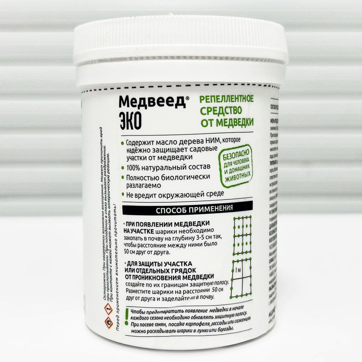 - Содержит масло дерева ним, которое надежно защищает участки от медведки.