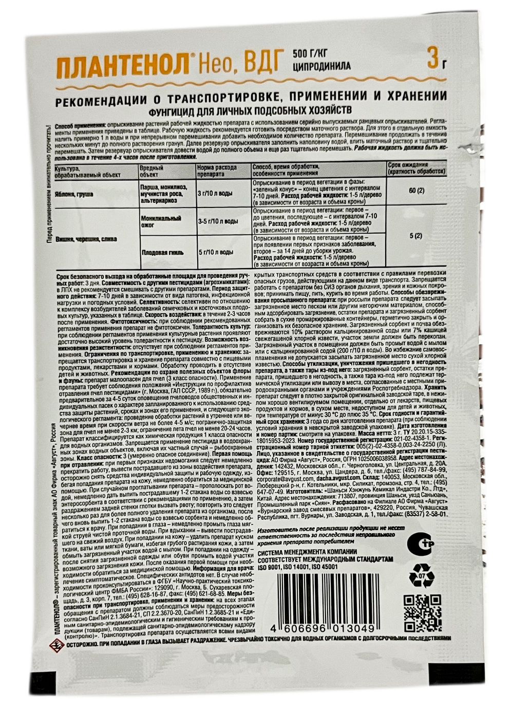 ПЛАНТЕНОЛ НЕО 3г АвгустСостав: ципродинила 500 г/кг.