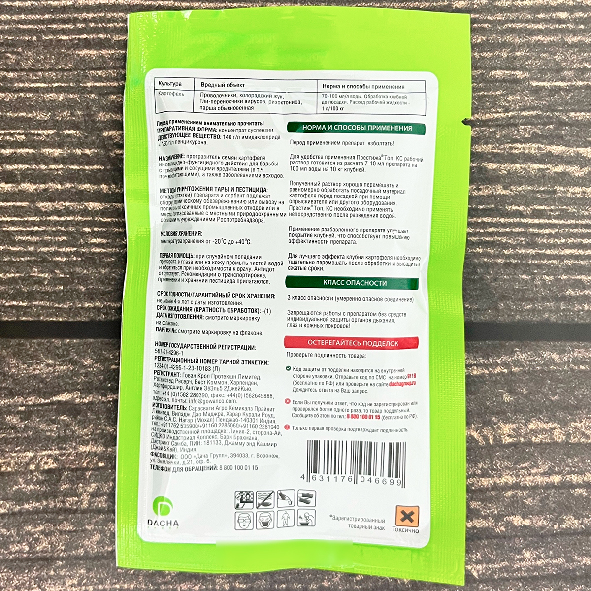 Период защитного действия От проволочника, вирусопереносящих тлей и колорадского жука – от посадки до начала отмирания ботвы. От ризоктониоза и парши – в течение всего вегетационного периода.