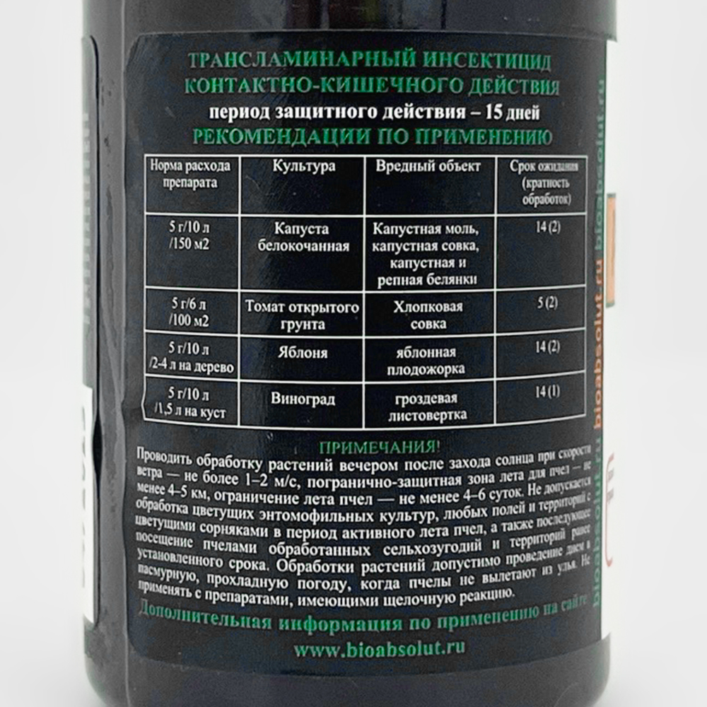 - Трансламинарный инсектицид контактно-кишечного действия;