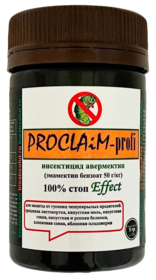 PROCLAiM-profi (ПРОКЛЭЙМ) ВРГ 5гПрофессиональный и эффективный препарат для защиты от гусениц чешуекрылых вредителей. Действующее вещество: эмамектин бензоат 50 г/кг водорастворимые гранулы.
