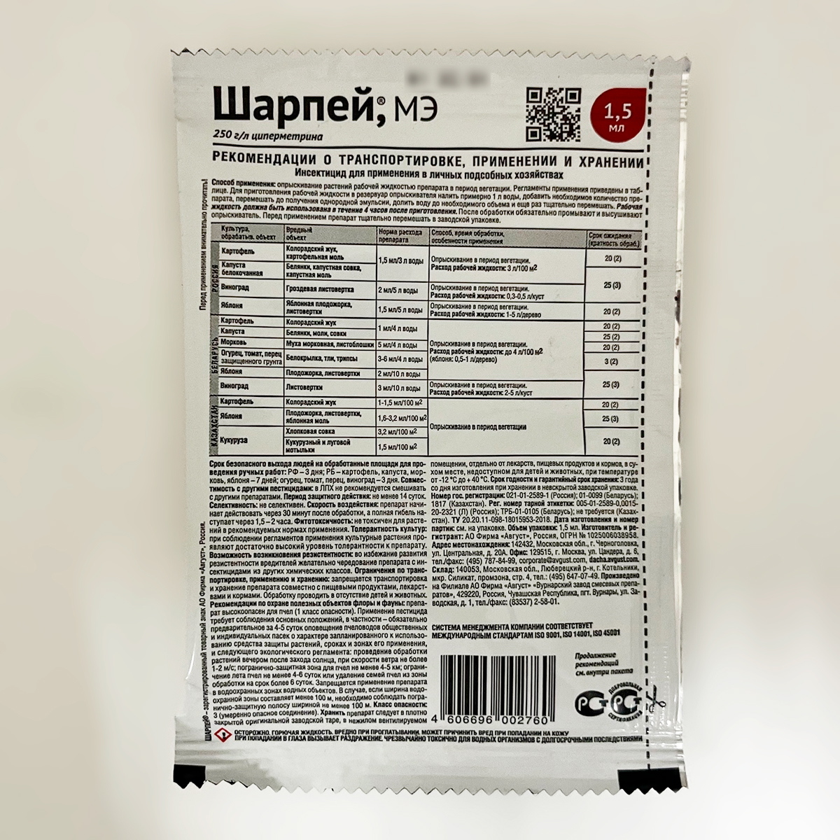 ШАРПЕЙ, МЭ 1,5млСостав: 250 г/л циперметрина.