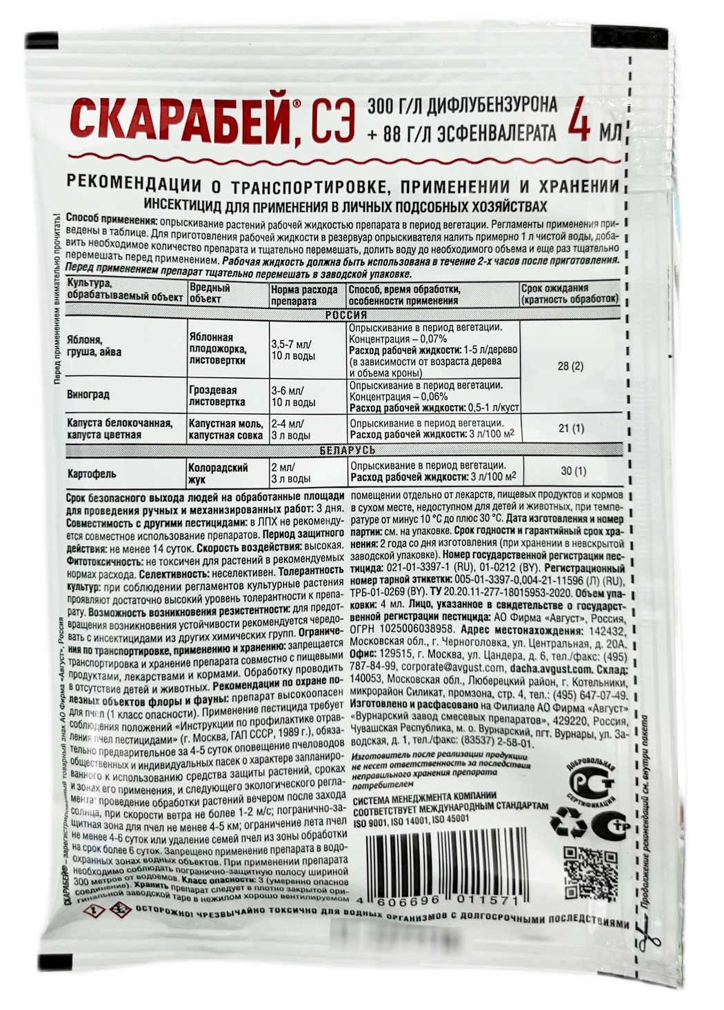 Скарабей 4 мл.Двухкомпонентный препарат против листогрызущих вредителей на плодовых, овощных культурах, картофеле и винограде.