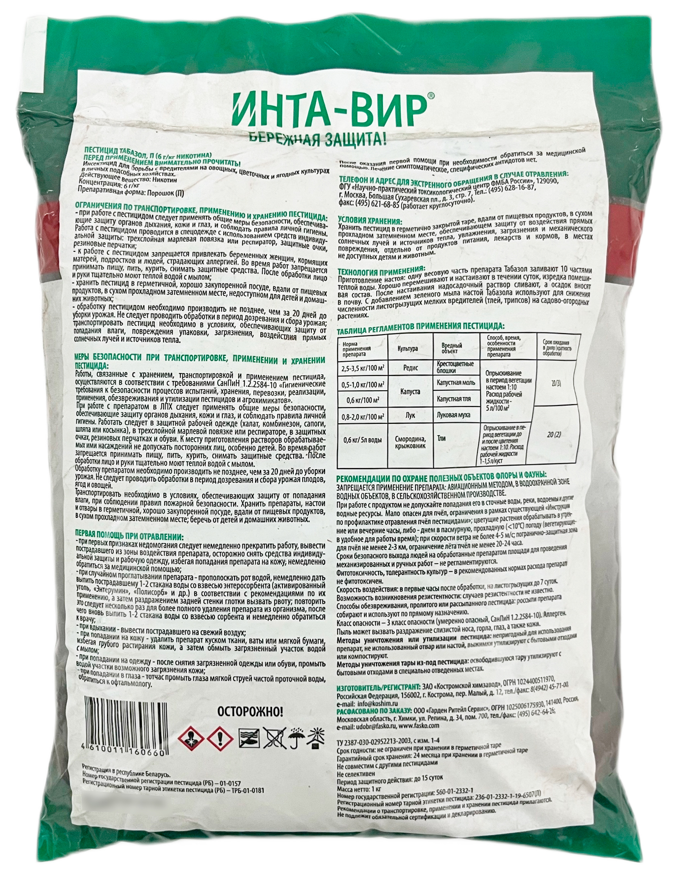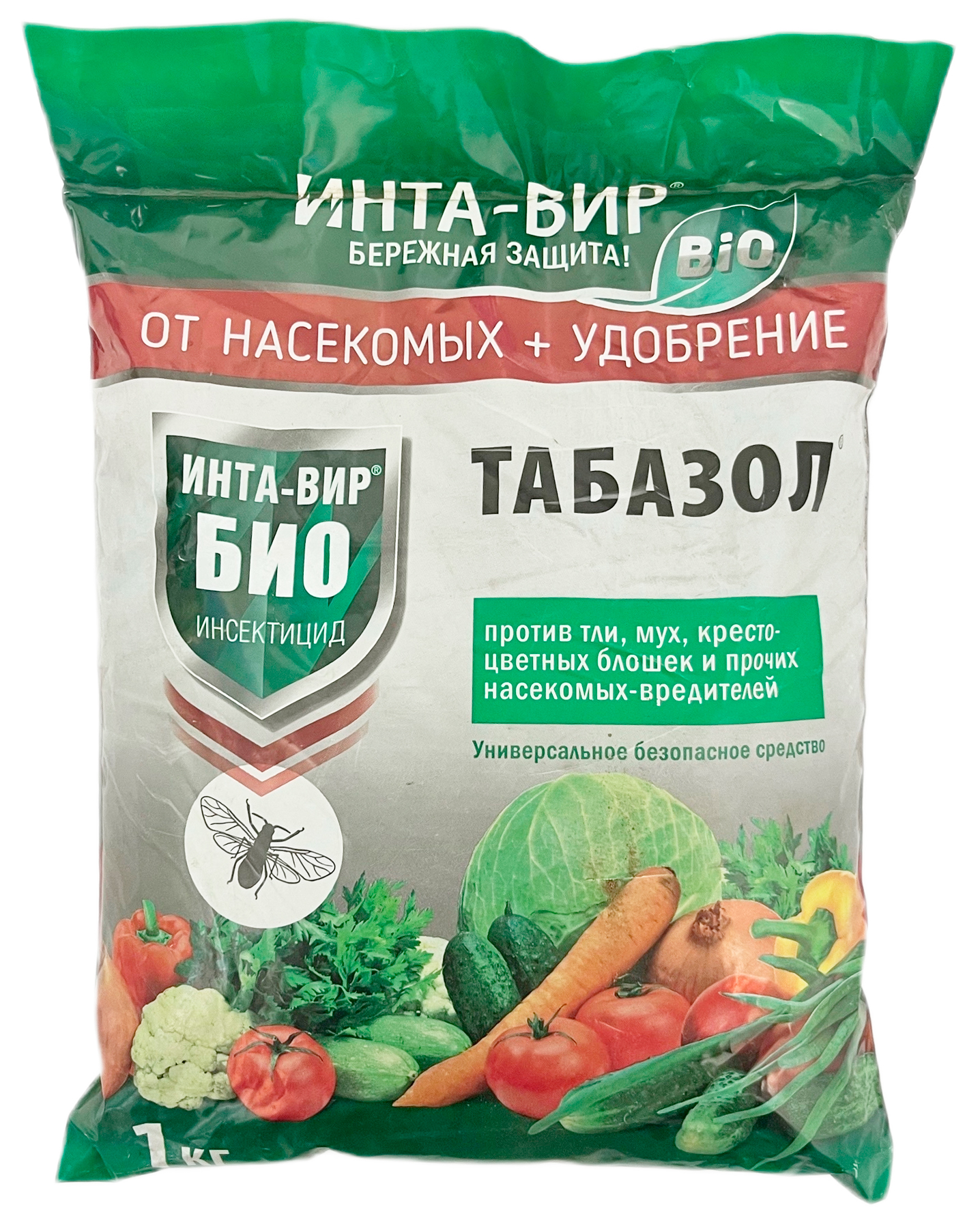 Табазол ИНТА-ВИР 1кгОт насекомых + удобрение. Против тли, мух, крестоцветных блошек и прочих насекомых-вредителей. Универсальное безопасное средство.