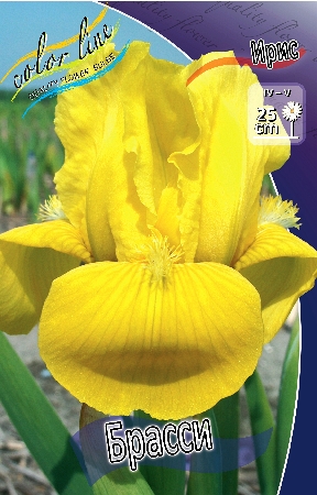 Ирис Брасси относится к карликовым сортам. Цветок золотисто-жёлтый. Цветонос до 3 см. Листья прикорневые, широколинейные, сизоватые. Высота растения 25 см. Посадка растения проводится осенью в сентябре-октябре, весной в апреле-мае, а также летом, после цветения растения. При посадке, корневище слегка углубляется и мульчируется по поверхности, нуждается в сухом местоположении. Цветение ириса происходит в апреле - мае, раньше других видов. Ирис предпочитает легкие, богатые питательными веществами почвы с нейтральной или слабокислой реакцией. Ирис любит солнце и безветренные, тихие места. Используется для оживления террас весной; высаживается главным образом в керамические чаши.Характеристики