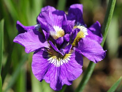 Ирис сибирский: высота растения 60-100 см, листья линейные, заостренные, образующие густой темно-зеленый куст. Цветки фиолетово-синие или светло-фиолетовые. Цветение июнь. Морозостоек.Дабл Стандарт: высота 85 см. Цветок махровый, до 14 см в диаметре, лепестки сине-фиолетовые с желтым пятном в центре.