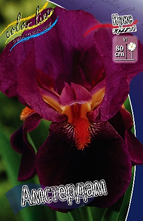 Ирис бородатый "Amsterdam"Цветок крупный, одиночный, тёмно-фиолетового цвета, у основания жёлтый, с буро-фиолетовыми жилками. Высота растения до 100 см.
