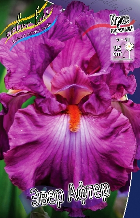 Ирис Эвер Афтер относится к германским сортам. Цветок: ярко-лиловый с осветленным центром на нижних лепестках, бородка оранжевая, гофрированный, повторноцветущий. Высота растения 50 см. Посадка проводится осенью в сентябре-октябре, весной в апреле-мае, а также летом, после цветения растения. При посадке, корневище слегка углубляется и мульчируется по поверхности. Цветение июнь-начало июля. Ирис предпочитает легкие, богатые питательными веществами почвы с нейтральной или слабокислой реакцией. Ирис любит солнце и безветренные, тихие места. Используется в мужских композициях и букетах, на альпийских горках и бордюрах. Сорт очень декоративен!Характеристики