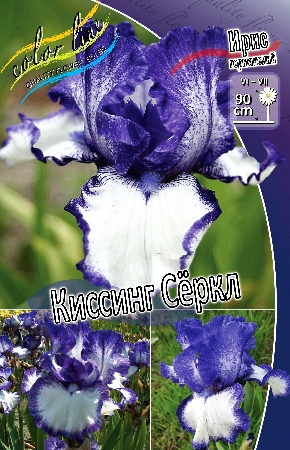 Ирис бородатый Kissing Circle Вacильково-синие верхние лепестки; на нижних большое белое пятно, края которого окантованы каймой цвета верхних лепестков.Описание Ирис бородатый Kissing Circle Период цветения май-июнь. Высота до 60 см.