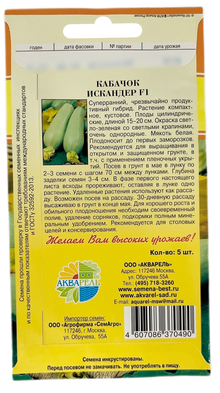 Кабачок Искандер F1 5шт Акварель семена