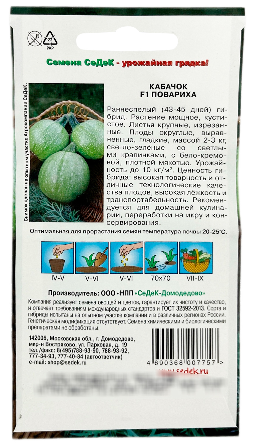 кабачок Повариха F1 (Евро, 1; 6822) семена