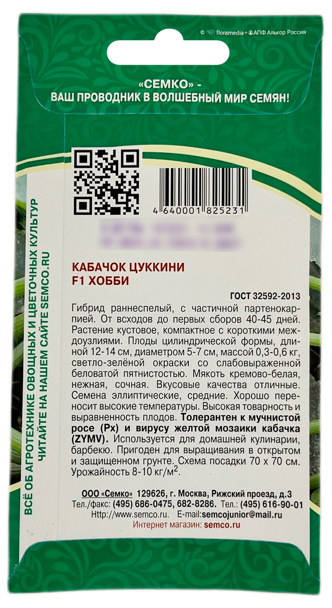 Хобби КАБАЧОК СЕМКОГибрид раннеспелый. Куст компактный, преобладают одностебельные растения, главный побег короткий. Лист зеленый с белесыми пятнами. Плод цилиндрический, массой 0,5-1,0 кг. Поверхность гладкая, зеленовато-белая, без сетки и рисунка. Кора тонкая, деревянистая. Мякоть белая, плотная, нежная. Вкусовые качества кулинарной и консервированной продукции отличные.