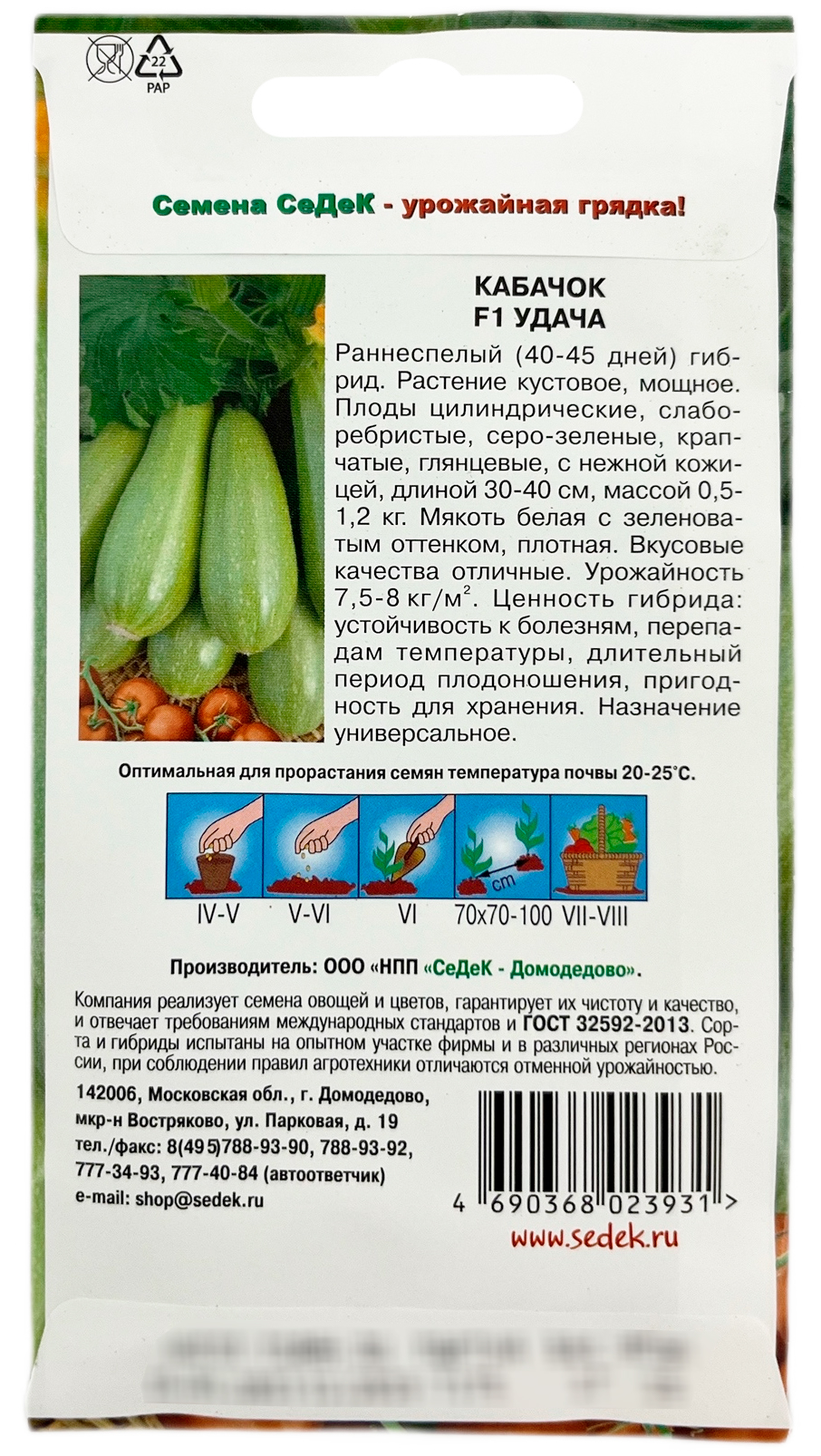 Кабачок Удача (Евро, 2) семена