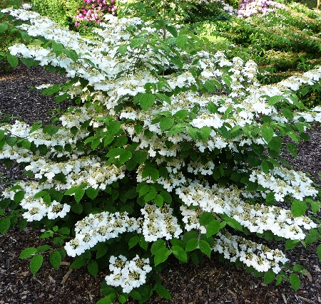 Калина складчатая Каскад Viburnum plicatum Cascade Обильноцветущий кустарник с широкой кроной. Листья осенью красно-пурпурные, с декоративными жилками. Плоды красного цвета.Характеристики