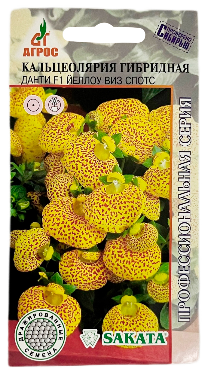 Кальцеолярия Данти F1 Йеллоу виз спотс АГРОСНежное, обильно цветущее растение для выращивания в комнатных условиях и на клумбах. Яркий желтый цвет с веселыми горошинами. Кальцеолярия растет на любой садовой земле с очень хорошим дренажем, на солнечном месте. Кальцеолярия светолюбива, холодостойка. Требуется обильный полив и высокая влажность воздуха, но опрыскивания по листьям не любит. Зацветает через три месяца после всходов. Семена сеют по поверхности, не засыпая, но прикрывают стеклом или пленкой. Температура необходимая для всходов 18-20°С. Всходы на свету (15-20 дней), но требуется защита от прямых солнечных лучей. Температура в период активного роста и цветения 12-15°С, в зимний период снизить до 10-12°С. В начале роста нужны регулярные поливы, взрослые растения поливают реже. При регулярной подкормке полным комплексным удобрением кальцеолярия отблагодарит вас обильным и продолжительным цветением. Сочетается с пестрыми летниками (ноготками, бархатцами, ромашкой, красной пеларгонией и лобелией с синими цветками).