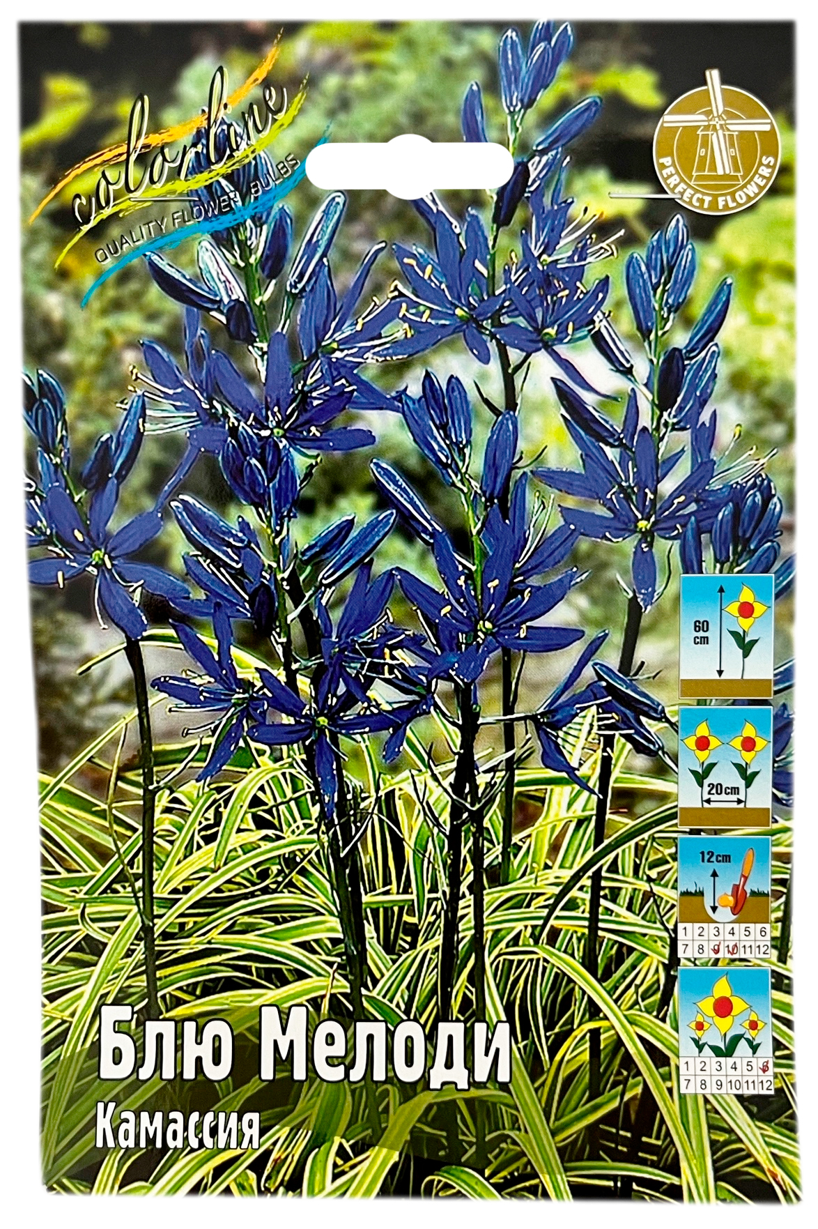 Камассия БЛЮ МЕЛОДИ (голубая лилия)Многолетник семейства лилейных. Отличное бордюрное и палисадное растение. Очень красиво смотрится группами. Высота до 60 см. Цветёт в июне ярко-синими соцветиями. Декоративная листва придаёт этому сорту особую утонченность.