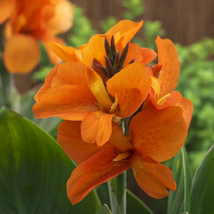 Канны - многолетние, травянистые растения с клубневидными корневищами. Стебли прямостоячие, неветвящиеся. Листья крупные, длиной 25-80 см, зеленые, полосатые или пурпурно-бронзовые. Цветки красные, оранжевые, желтые, розовые различных оттенков или белые, без запаха, крупные, ассиметричные, на коротких цветоножках, собраны в конечные кистевидные или метельчатые соцветия.Месторасположение: светлый, солнечный, защищенный от холодных ветров участок.