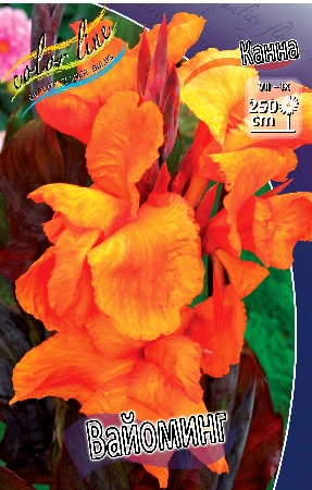 Канна Вайоминг (WYOMING) относится к группе луковичных цветов.Высота канны – 100-150 см, размер цветка – 10-12 см, сроки цветения – июнь-сентябрь, декоративность – весь сезон. Листья бронзово-коричневого цвета.