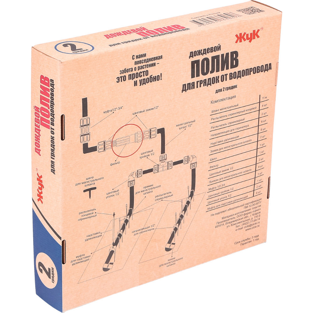 Дождевой полив Жук от водопровода на 2 грядкиКомплект дождевого полива для грядок предназначен для равномерного увлажнения почвы на грядках.