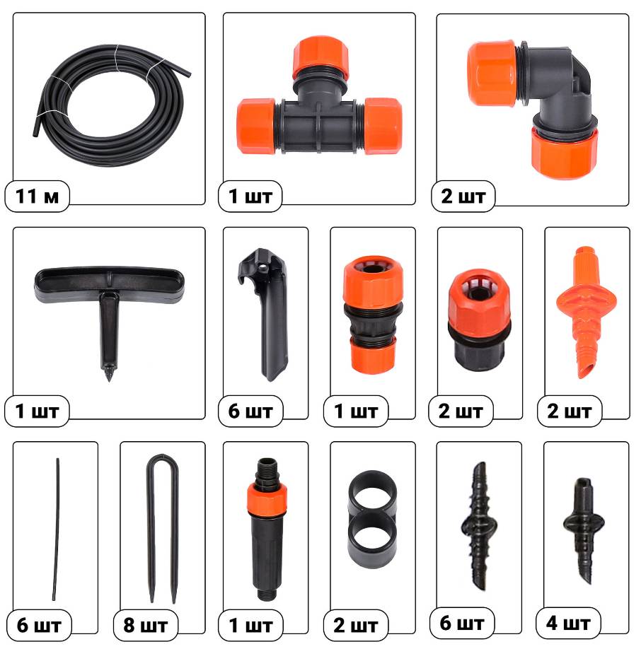Комплект на 2 грядки – рассчитан для организации полива на площади 8 кв. или на две грядки размером 4х1 при посадке растений в 2 ряда.