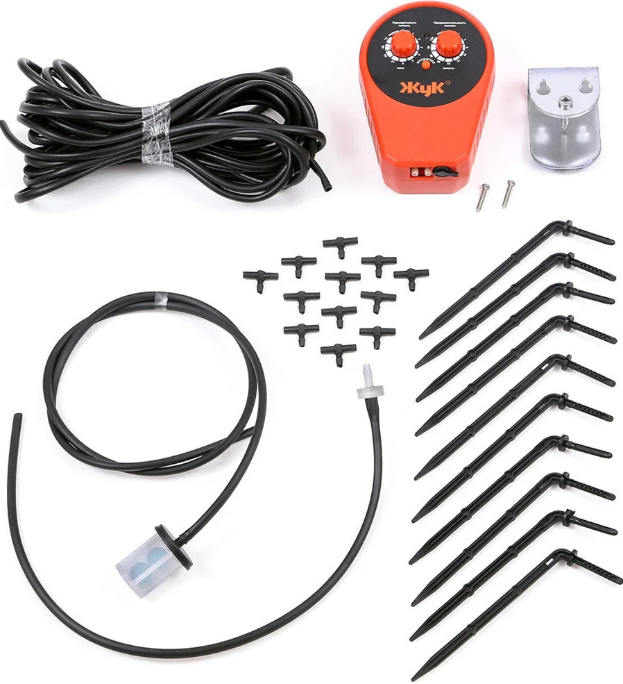 Капельный полив Жук для домашних растенийСистема автоматического полива предназначена для организации полива домашних комнатных растений, растений оранжереи, теплицы или маленького участка. Типовым примером применения является полив растений во время отпуска или командировки. Также удобно применение системы при организации полива рассады перед ее посадкой.