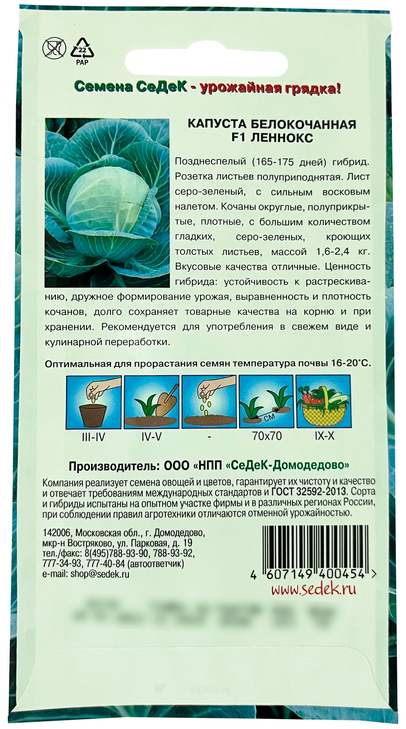 Капуста белокочанная Леннокс F1 (Евро 15) семена