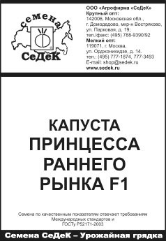 Капуста Принцесса Раннего Рынка F1 (Б/К) семена