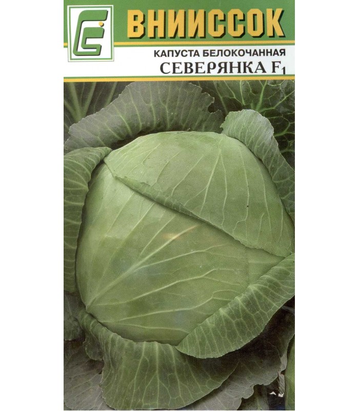 Капуста белокочанная Северянка F1 среднепоздний гибрид (125-135 суток от высадки рассады), зарекомендовал во всех регионах Нечерноземной зоны РФ формированием высокого урожая. Кочан плотный (плотность 4,5 балла), мякоть белая, масса – 3 кг. Вкус хороший и отличный. Гибрид долгое время сохраняется на корню, имеет высокую лежкость, отличные засолочные качества. Рекомендуемая норма высадки 28,5 тыс. растений на 1 га., урожайность 70-80 т/га, выход товарной продукции 95 %.Устойчив к фузариозному увяданию, киле, бактериозам.