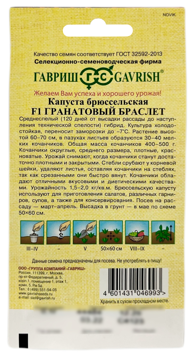Капуста брюссельская Гранатовый браслет F1 0,1г автор семена