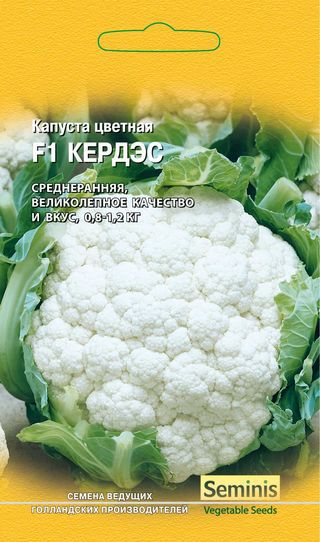 Капуста цветная Кэрдэс F1 10 шт.(Голландия) Н14Среднеранний (75 дней от высадки рассады до сбора головок) высокоурожайный гибрид. Розетка листьев от вертикальной до приподнятой. Головка округло-плоская, среднебугристая, плотная, белоснежная, хорошо защищена листьями. Масса головки 2-3 кг. Вкусовые качества отличные. Гибрид отличается высокой устойчивостью к стрессовым условиям выращивания, ценится за великолепное качество головок. Рекомендован для переработки и заморозки. Урожайность 3,0-4,0 кг/м2. Посев на рассаду — в середине апреля. Пикировка — в фазе семядолей. Высадка в грунт — в середине мая по схеме 30х50 см.