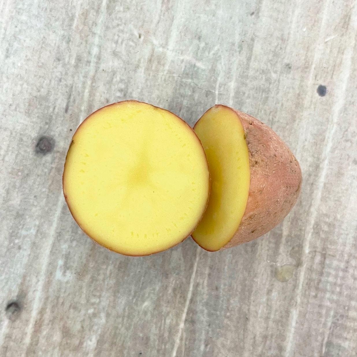 Клубни достаточно крупные, весом до 150 г, окрашены в красноватый цвет, на срезе бледно-желтые, овальной формы и одинакового размера, выход мелкой нетоварной картошки минимален.