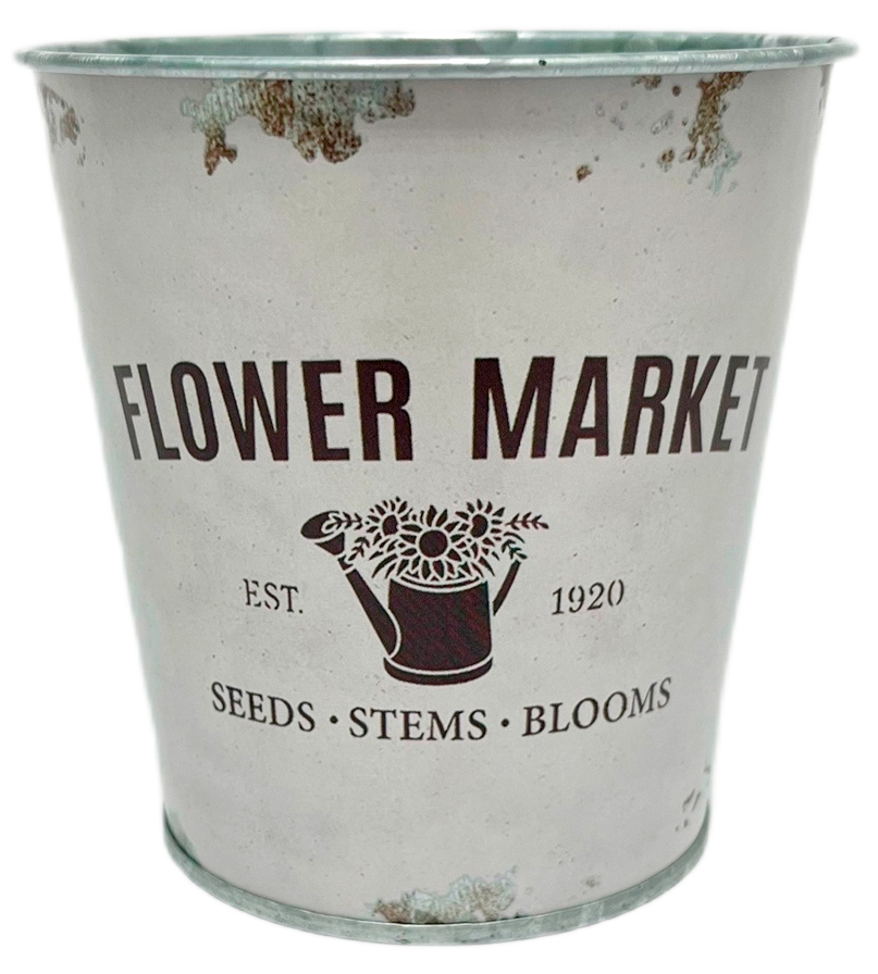 Декоративное кашпо Цветочный рынокСтильное, практичное и долговечное решение для украшения вашего сада, дома, офиса - металлическое кашпо в виде ведерка.