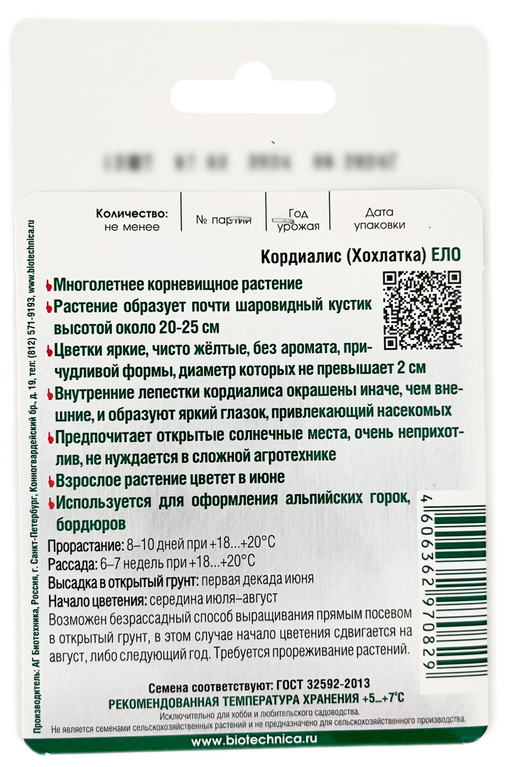 Кордиалис хохлатка ЕЛО БИОТЕХНИКАМноголетнее корневищное растение. Растение образует почти шаровидный кустик высотой около 20-25 см. Цветки яркие, чисто жёлтые, без аромата, причудливой формы, диаметр которых не превышает 2 см; внутренние лепестки кордиалиса окрашены иначе, чем внешние, и образуют яркий глазок, привлекающий насекомых. Предпочитает открытые солнечные места, очень неприхотлив, не нуждается в сложной агротехнике.