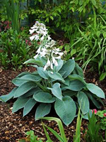 Высота куста 65-80 см. Ширина куста 120-150 см. Листья сердцевидные, плотные, сине-зелёные, слегка чашевидные и жатые. Цветы белые. Размер листа 32х30 см.Характеристики